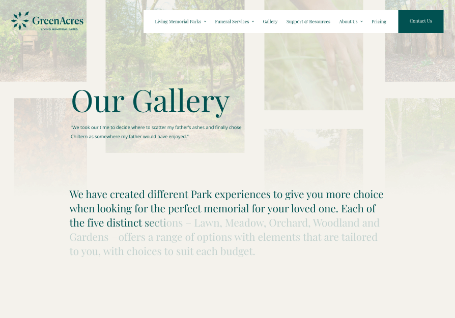 We have created different Park experiences to give you more choice when looking for the perfect memorial for your loved one. Each of the five distinct sections – Lawn, Meadow, Orchard, Woodland and Gardens – offers a range of options with elements that are tailored to you, with choices to suit each budget.
